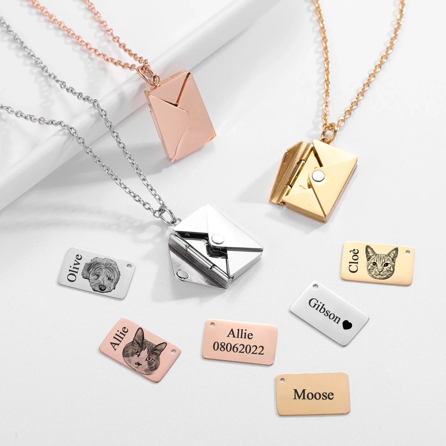 Der kleine, elegante Briefumschlag-Anhänger verbirgt ein liebevoll personalisiertes Foto deines Tieres, das nur dir gehört.