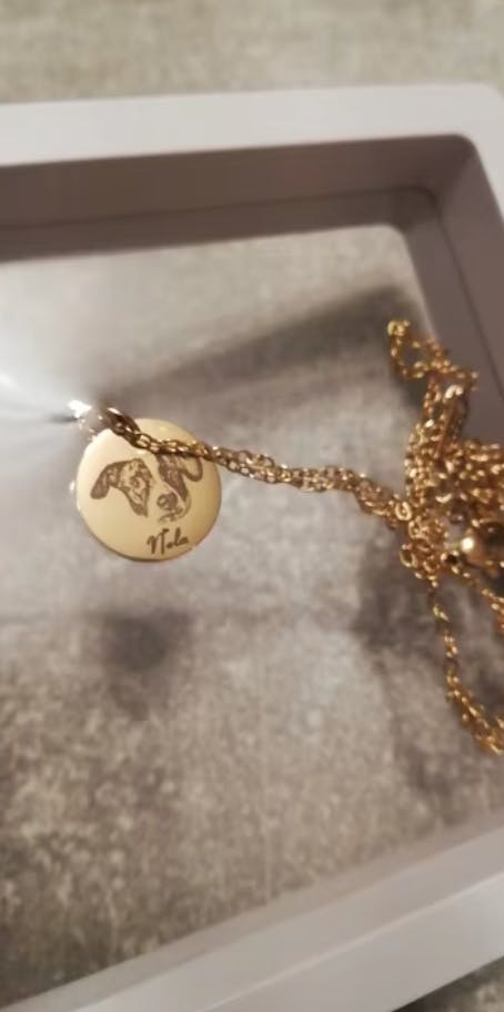Mit deinem liebsten Vierbeiner als Foto und Namen auf einem schicken Edelstahl-Anhänger kannst du ihn immer nah am Herzen tragen.